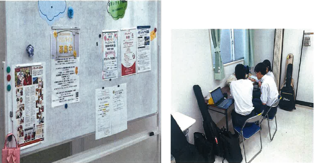 ホワイトボードには、地域の高校生や利用者が自由に書き込み